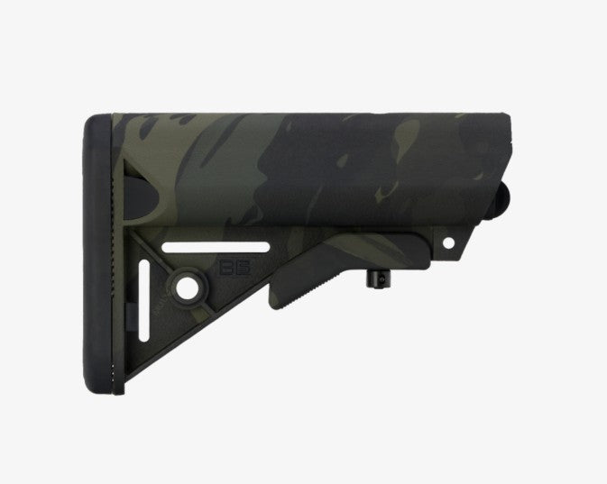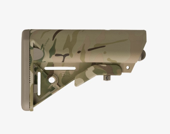 Introducing the B5 Systems Enhanced SOPMOD Buttstock, designed to meet the unique needs of Special Operations Forces and firearm enthusiasts alike. This MILSPEC buttstock is constructed of high-grade materials and comes finished in Black. It easily fits onto a MILSPEC Receiver Extension (Buffer Tube) and provides an exceptional cheek weld and storage capabilities.