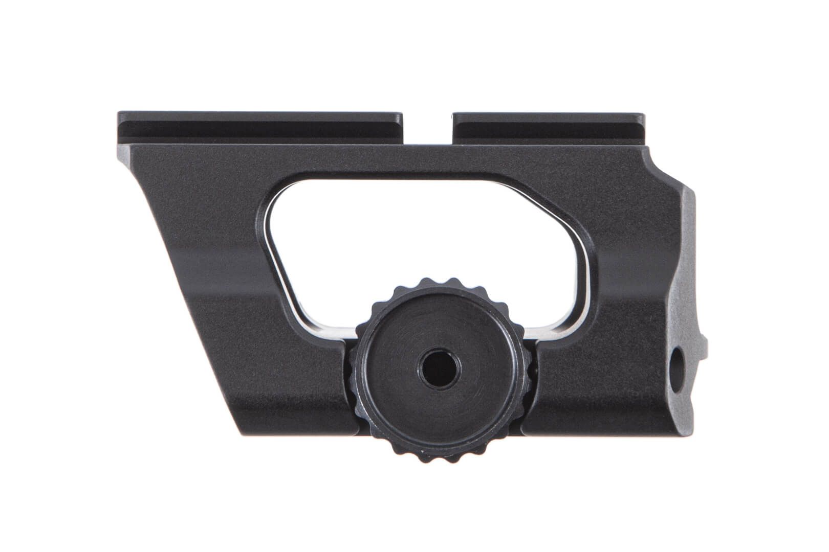 Today, the Leap mount features an even stronger base with a forward lean to provide more room for magnifiers, and chamfered side pockets for improved thumbscrew access. The re-designed clamp has discreet hardened steel pins and a stopper to indicate when it’s sufficiently open to clear a Picatinny rail.