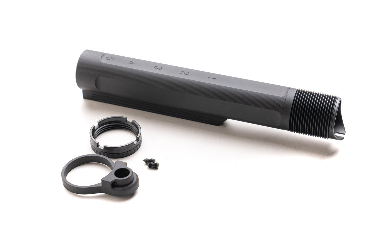 - Includes Carbine buffer tube, Castle nut , Receiver end plate and Hardware